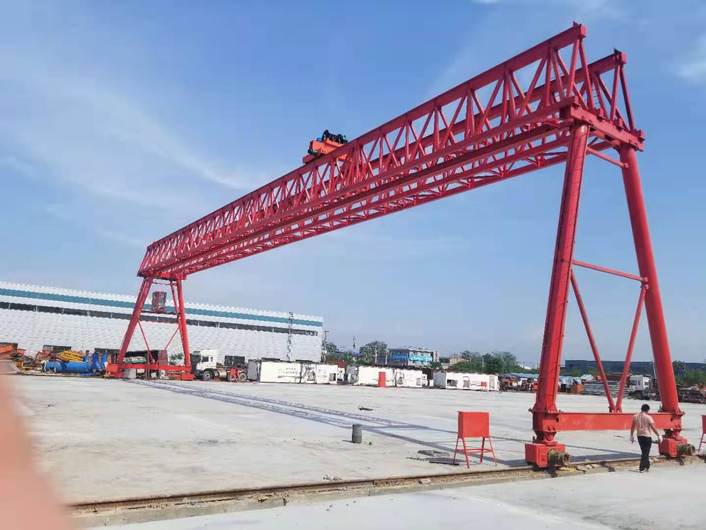 提梁機(jī)既可兩臺(tái)配合抬吊預(yù)制梁,也可以單臺(tái)起重機(jī)配雙吊具起吊預(yù)制梁,兩臺(tái)同時(shí)起重的提梁機(jī)各自的起重量一般為450噸,單臺(tái)起重的提梁機(jī)起重量通常可達(dá)900噸。它配置支腿行走、天車行走及天車起吊設(shè)備,可以實(shí)現(xiàn)全方位機(jī)械化動(dòng)作。主要用于將預(yù)制梁從制梁臺(tái)提吊至存梁臺(tái)位,預(yù)制梁養(yǎng)護(hù)完成后將其從存梁臺(tái)位吊運(yùn)到運(yùn)梁車上。作為起重設(shè)備完成架橋機(jī)的組裝和拆卸。還用于架設(shè)墩身不高的旱橋。